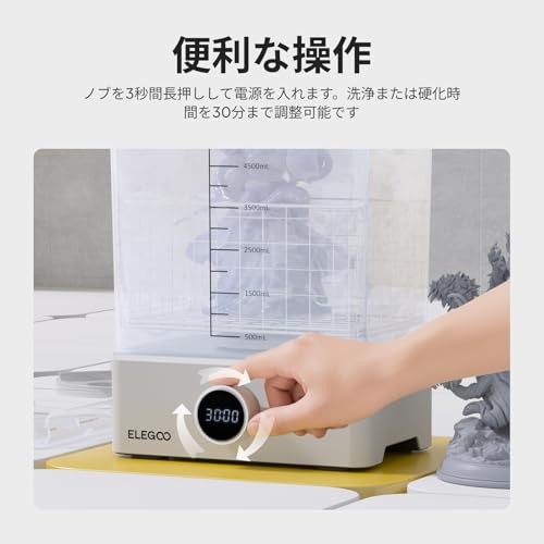 ◆【簡単で直感的な操作】ノブを長押しして電源を入れ、ノブを回して洗浄または硬化の適切な時間を設定すると、モデルは短時間で準備することができます。 UVカバーは紫外線を99.9%カットし、二次硬化時の視力を守ります。