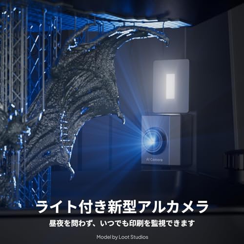 ◆【常時監視用のライト付き新しいAIカメラ】AIカメラは、空いたビルドプレートや歪んだモデルをリアルタイムで監視し、即座にアラートを表示することで、素早く対処できます。チャンバーライトが内蔵されているため、昼夜を問わず印刷の進行状況を簡単に確認でき、タイムラプス機能により、クリエイティブな旅を簡単にキャプチャして共有できます。
