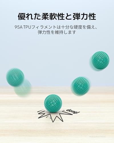 ◆【優れた柔軟性と弾力性】ショア硬度95AのELEGOO TPU 95Aフィラメントは、壊れることなく元の長さの5倍まで伸ばすことができます。