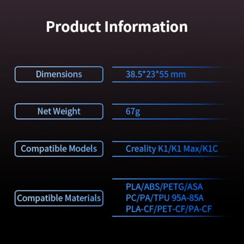 ◆主な機能 Creality K1 / K1 Max / K1C にシームレスにフィット ヘリカルギアによりフィラメントの摩耗が 60% 削減されます。 デュアルドライブシステムにより、滑りのない安定した押出が保証されます。 さまざまなフィラメントの硬度に合わせて圧力を自動的に調整します 特許取得済みの RNC コーティングギアにより、耐用年数が 3 倍に延長 オプションのファームウェア不要のインストールによるプラグアンドプレイ互換性