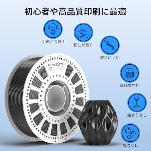 ◆【真空密封包装&1年間の保証】NevsByeフィラメント pla+ はな製品のみを製造しています。当店は1年間の保証サービスを提供し、私達に連絡するために初めて問題がある、我々はあなたがオンラインで問題を解決するための24時間以内になります。さらに,3Dプリンタフィラメントは、乾燥剤の入ったバッグによって真空包装されています。乾燥した状態を保ち、外部のチリやホコリから守り、ノズルの詰まりを防ぐことにより。保存と防湿:密封して乾燥保存(湿気を吸収しやすい)、湿気は60℃で4-6時間乾燥させる