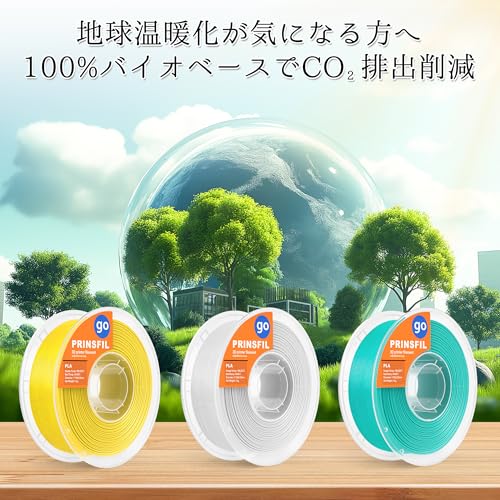 ◆✅ 地球温暖化が気になる方へ PRINSFIL GOで使用しているPLA原料は、世界500強企業トタル社製であり、USDA Biopreferredプログラムに認証されたバイオ素材です。 バイオベース度は100%で、石油由来材料(例:PETG)と比べて、CO₂排出量を大幅に削減できます。