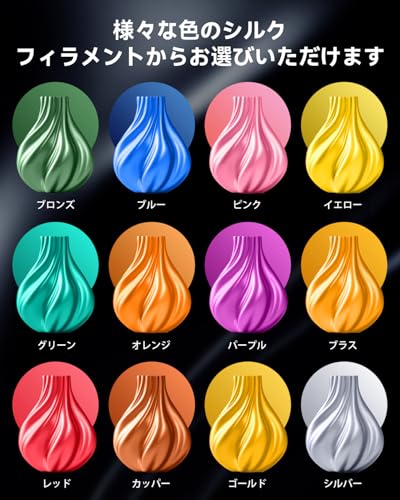◆【シルクのような質感、滑らかな表面】- シルクフィラメントは非常に光沢のある滑らかな表面を持ち、反射効果に優れ、鮮やかな発色で、3Dプリントアートに最適です。